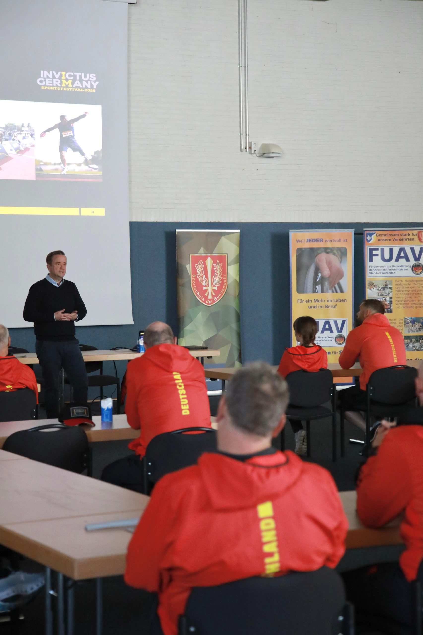 Abschließend berichtete Martin Ammermann, Vorstandsmitglied des für das Invictus Germany Sportfestival verantwortlichen Vereins TeamRespect e.V., von den geplanten Inhalten des Sportfestivals sowie von den zu erwartenden internationalen Teilnehmenden, darunter sogar ein Team aus Australien.