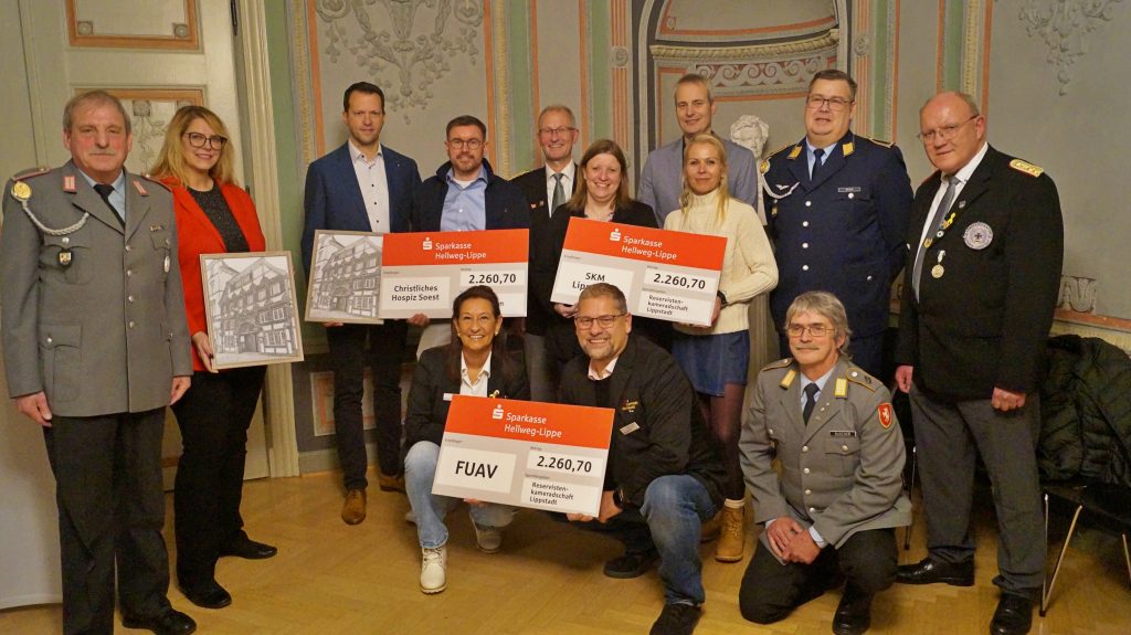 Kurz vor dem Weihnachtsfest lud die RK Lippstadt zur feierlichen Übergabe symbolischen Spendenschecks nach Lippstadt ein. Das Traditionskonzert des Heeresmusikkorps Kassel – organisiert von den Kameradschaften des Altkreises Lippstadt – bildet seit Jahren die finanzielle Grundlage dieser Spendenaktion. Die Erlöse kommen gemeinnützigen Zwecken zugute, darunter dauerhaft dem FUAV.de. Ebenso freuen durften sich in diesem Jahr über eine Spende der Sozialdienst Katholischer Männer (SKM Lippstadt) und die Christlichen Hospize im Kreis Soest.